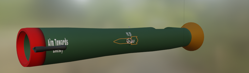Gameplay isn’t done yet but I got some paint setup on the rocket launcher and the rocket. Threw a bunch of random phrases+numbers on it, still looks pretty cartoon-y (but so does everything atm). Next step is to get the firing + reload sequence setup.