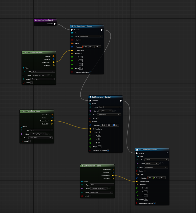 Above is the construction script which takes those red circles from the rig and puts them under each of the legs.